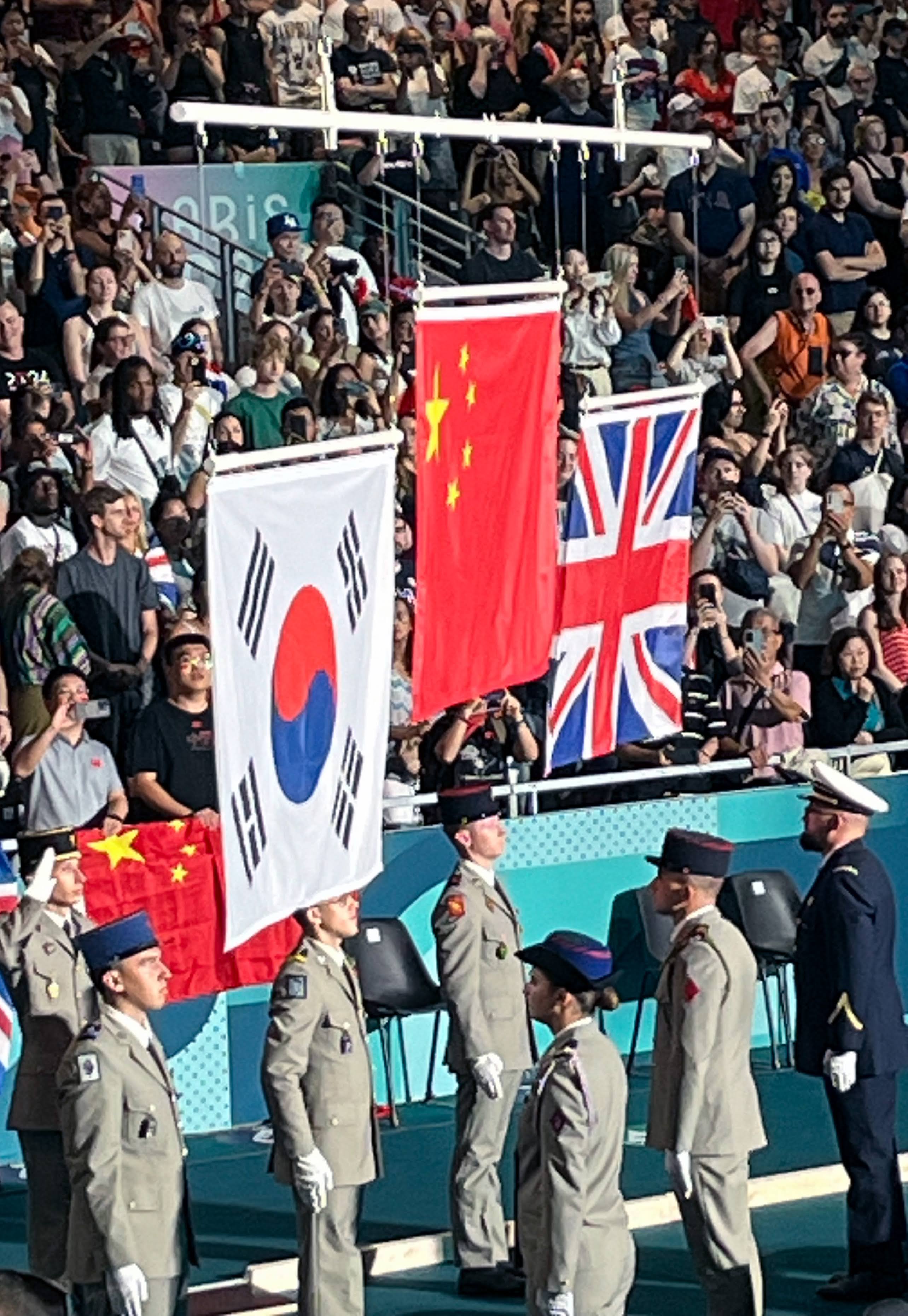 When we are still in town at the end of the Olympics, we usually fly out the following day. But since we’re retired, we decided that we would take a day to pack in leisure and walk around with nothing particular to do. This sounded good in theory, but it is going to be in the mid-90’s again today and being on a jet where it is cool is sounding pretty good! The only thing that we have scheduled today is to see if we can get into the Olympic superstore on the Champs Élysées. We go over to our favorite patisserie for breakfast and find that they are closed on Mondays. I had wanted to go into the Gare de Montparnasse to see if it would be easier to shlep our suitcases to the Metro Line 13 tomorrow morning than going to the closer Gaité station where we know we’ll have to carry our suitcases down two flights of stairs. So, we pick up our breakfast there instead. It turns out that if we can get past the crowds getting on trains, we can take a combination of elevators and escalators to get to Line 13 if we go into the Gare.