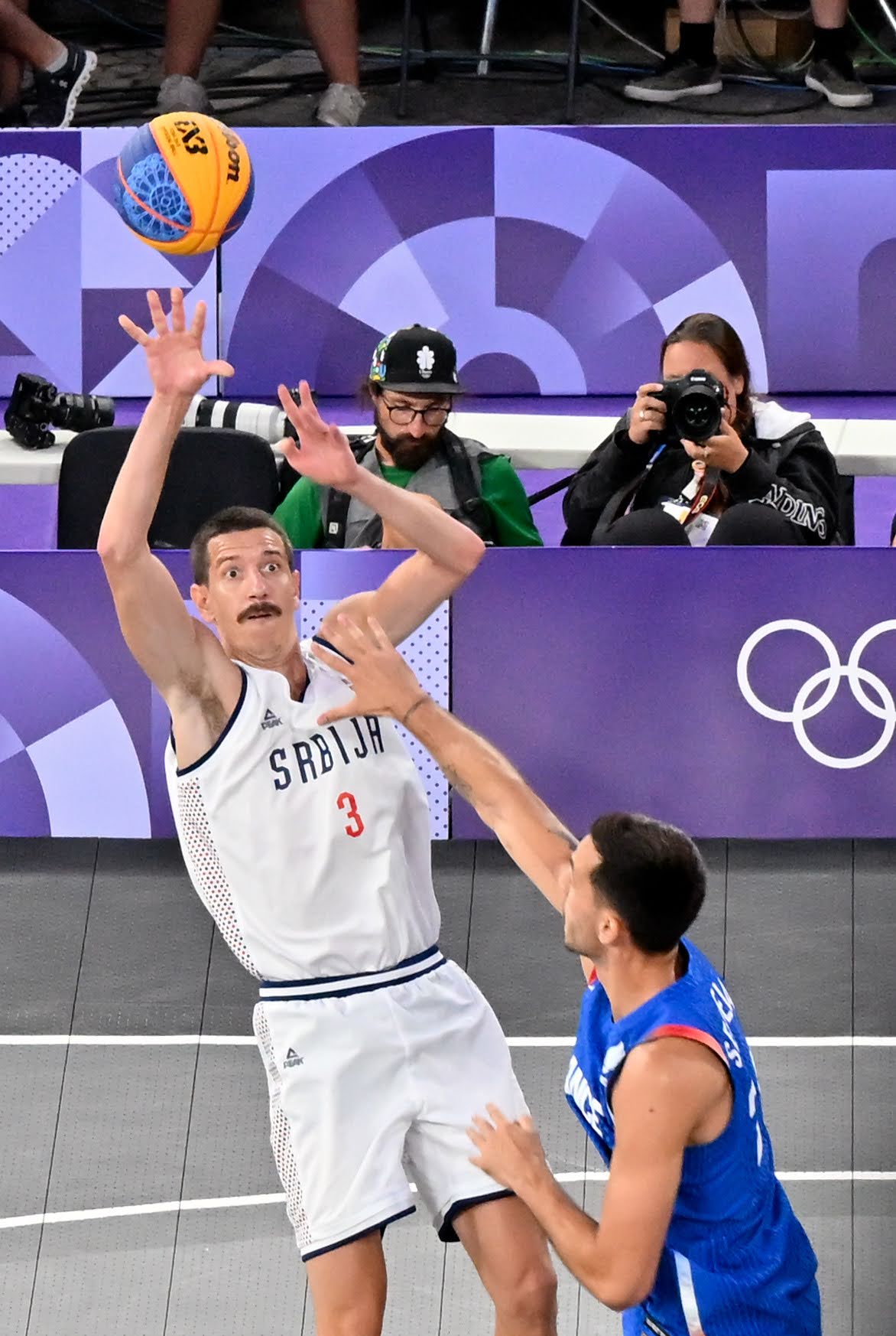 This is a multipurpose venue with skateboarding, breaking (break dancing) and BMX freestyle being contested here in addition to 3x3 basketball. This is one of the events where we were not able to get 3 seats together, so Sean goes off to his seat at the top of the stadium and we go a little farther down. In 3x3 basketball, the game lasts 10 minutes or until a team reaches 21 points, and there is a 12-second shot clock. There are 3 players (obviously) on a team with one substitute. A shot outside the arc (3-pt shot in standard basketball) counts for 2 points and anything else counts for 1 point. If you are on defense and you get a rebound or a steal, you have to take the ball outside the arc before going on offense. A shooting foul results in one free throw if you are inside the arc and two free throws if you are outside the arc. If a team commits more than 6 fouls, the other team gets two free throws for each additional foul.